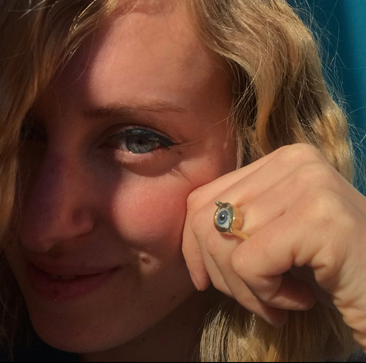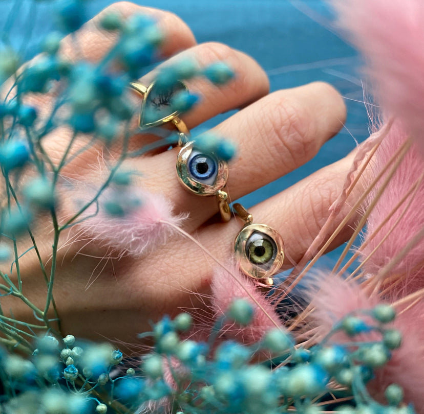 SGUARDI è la linea ormai iconica di meravigliOZ, un pò perchè gli occhi sono un elemento presente nel brand fin dalla grafica del logo, un pò perchè l'occhio aperto sulla meraviglia è un pò il manifesto stilistico e creativo di tutta la mia ricerca, un simbolo da portare al dito per ricordarsi semore che possiamo scegliere il nostro sguardo sul mondo e sulla nostra stessa vita.