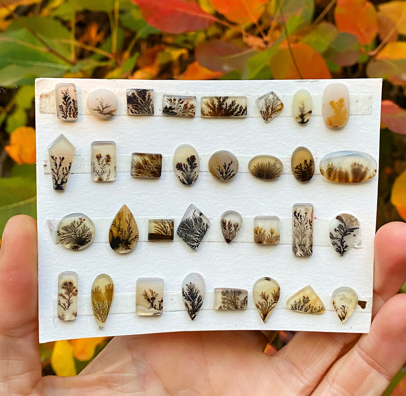 Considerata una delle varietà più rare e ricercate di agata, è una varietà di quarzo calcedonio traslucido, distinguibile per i suoi segni simili ad alberi e felci noti come "dendriti" che sono spesso di colore da marrone a nero.